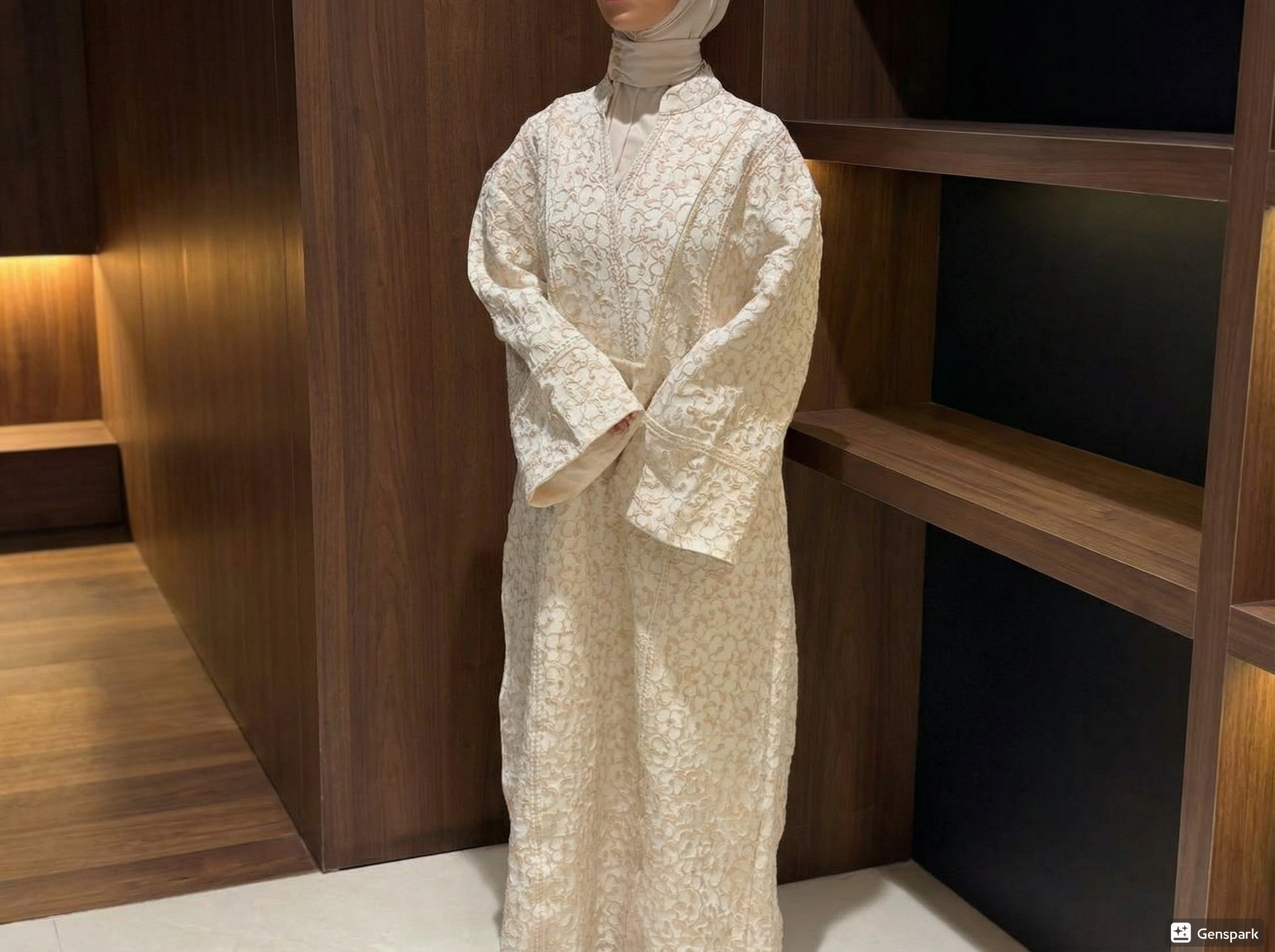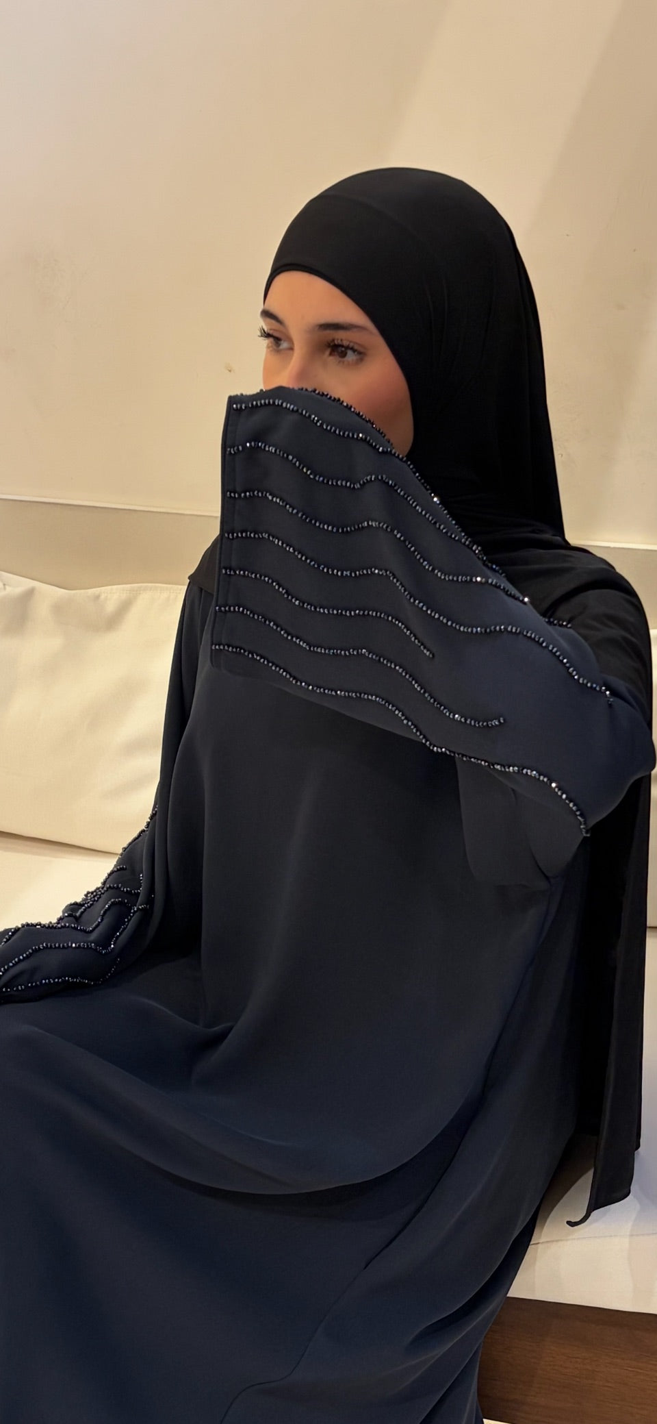 Abaya - robe longue en Jazz premium avec manches dentelle et Noeuds